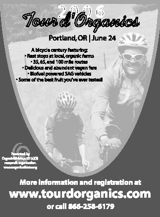 Like organic farming enriches the earth, the Tour d’Organics will enrich your body, mind, and spirit with a fitness challenge, good company and fresh, locally grown, organic food. Three days after the solstice, participants in our Portland ride will be treated to the first tastes of summer from local Portland farmers. This ride begins and ends at the epicenter for the local food movement in Portland: the Natural Capital Center in downtown. Sponsored in part by Ecotrust, the Tour d'Organics Portland will be treated to the first tastes of summer from local Portland farmers and a gourmet post-ride meal. There are 35, 65, and100 mile options. Go to www.tourdorganics.com or call 866-258-6179 for more information.